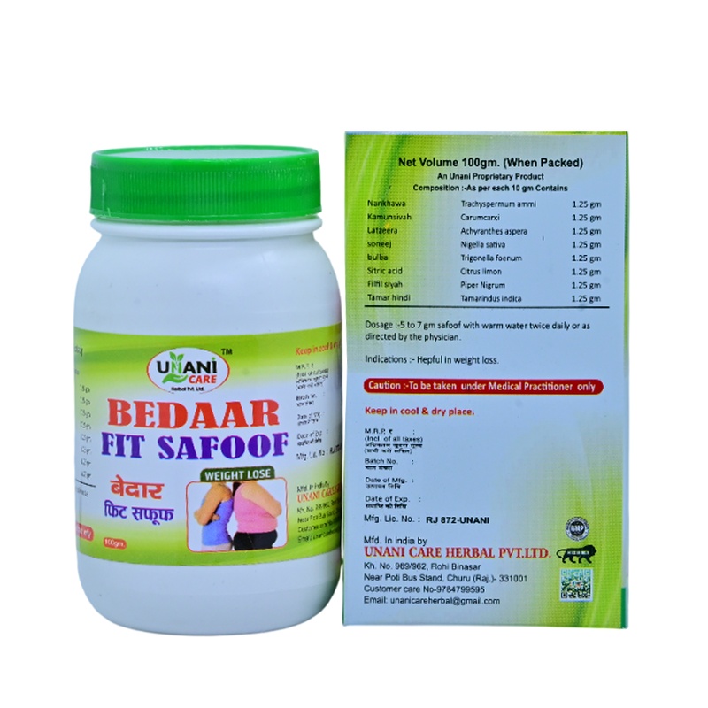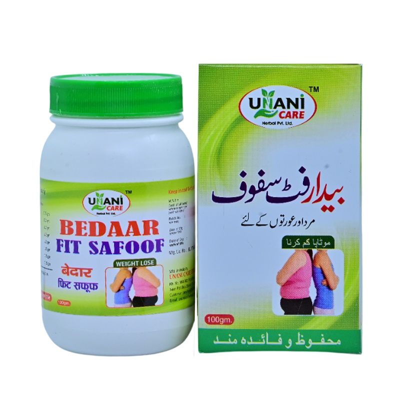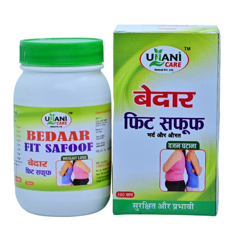 Bedaar Fit Safoof is a versatile herbal supplement designed to support a healthy and active lifestyle. Based on traditional Unani principles, this “Safoof” (fine powder) targets stubborn fat, improves digestion, and helps in maintaining an ideal body weight. It is a safe and natural way to complement your diet and exercise routine.