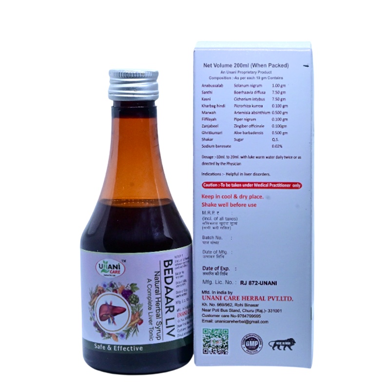 Bedaar LIV Syrup is a comprehensive liver tonic formulated to support and restore vital liver functions. Your liver works hard to filter toxins, and this herbal syrup provides the nourishment it needs to perform at its best. It helps in managing fatty liver conditions, improving appetite, and ensuring overall metabolic health.